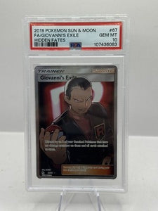 2019 Pokemon Sun & Moon Hidden Fates 67/68 FA Giovanni's Exile PSA 10