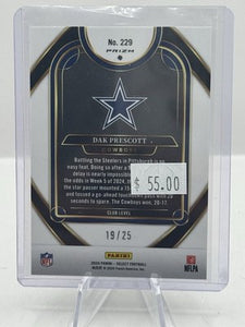 Dak Prescott Tie-Dye Shock Prizm 19/25 2024 Panini Select #229 Dallas Cowboys