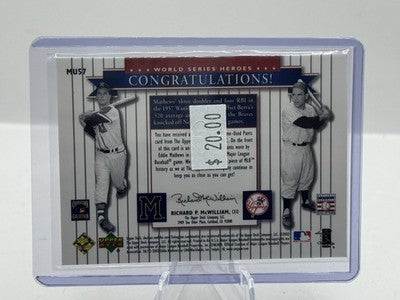 Eddie Mathews Game Worn Pants Patch & Yogi Berra 2002 Upper Deck World Series