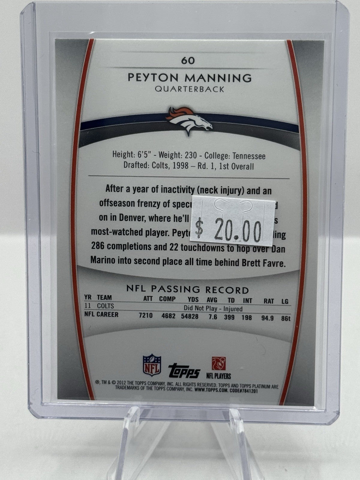 Peyton Manning Red 2012 Topps Platinum #60 Denver Broncos