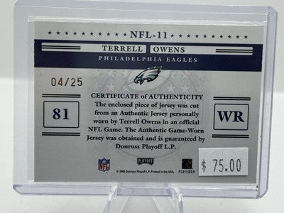 Terrell Owens Reebok Patch 04/25 2006 Donruss Playoff Stars of the NFL #11