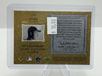 Tommy Holmes Patch 2001 Upper Deck SP Legendary Game Uniform Atlanta Braves
