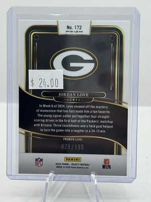 Jordan Love White Shock Prizm 029/199 2024 Panini Select #172 Green Bay Packers