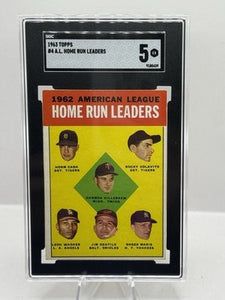 1963 Topps #4 A.L. Home Run Leaders Killebrew, Maris, Cash, Colavito SGC 5