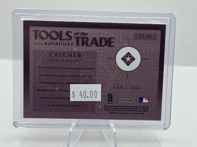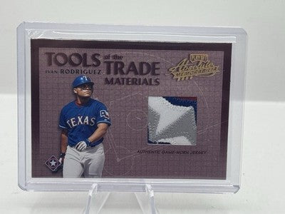 Ivan Rodriguez 4 Color Patch 166/300 2002 Playoff Absolute Tools of Trade #30 Texas Rangers - some back edge whiting