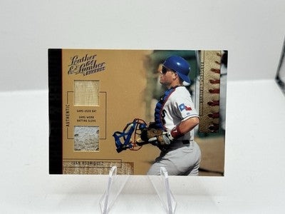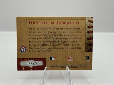 Ivan Rodriguez Dual Relic 17/25 2004 Donruss Leather & Lumber #17 Texas Rangers - edge wear
