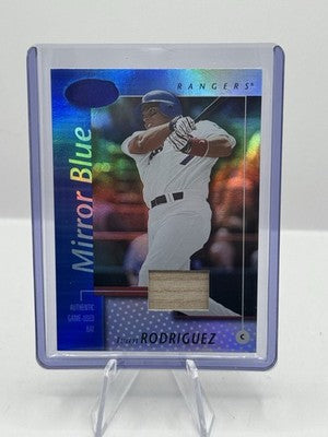 Ivan Rodriguez Game Used Bat Patch Mirror Blue 72/75 2002 Leaf Certified #135