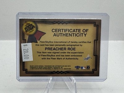 Preacher Roe Auto 2000 Fleer Greats of the Game LA Dodgers - lite corner wear