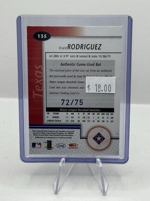 Ivan Rodriguez Game Used Bat Patch Mirror Blue 72/75 2002 Leaf Certified #135