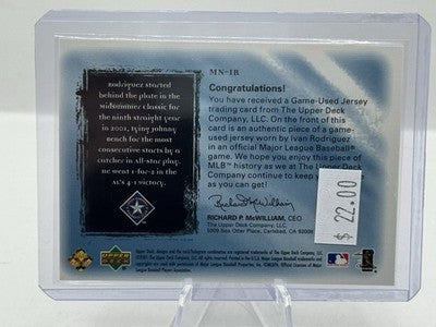 Ivan Rodriguez Game Used Patch 127/150 2001 Upper Deck Magic Numbers Rangers