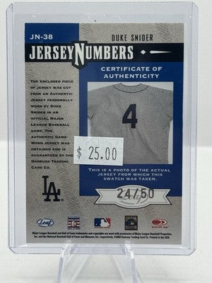 Duke Snider Patch 24/50 2003 Leaf Limited Jersey Numbers #38 Brooklyn Dodgers