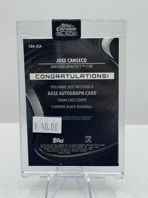 Jose Canseco Auto 2022 Topps Chrome Black Oakland Athletics