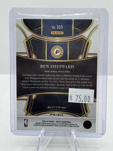 Ben Sheppard Tiger Stripe Prizm RC Mezzanine 2023-24 Panini Select #333 Pacers