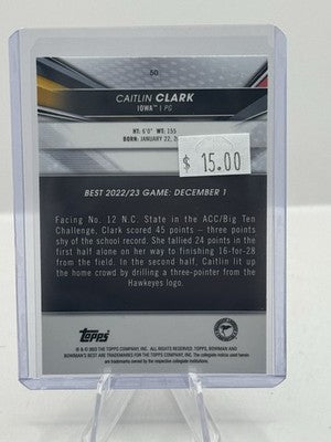Caitlin Clark 2022-23 Bowman Chrome U #50 Iowa