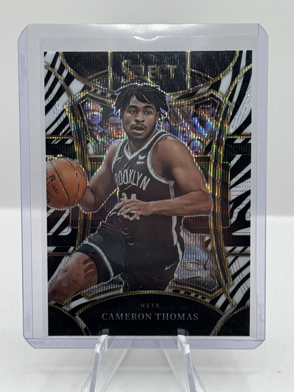 Cameron Thomas Zebra Prizm Mezzanine 2023-24 Panini Select #395 Brooklyn Nets