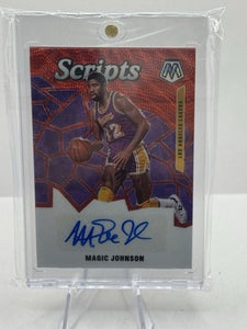 Magic Johnson Auto Red Wave Prizm 2019-20 Panini Mosaic Scripts LA Lakers