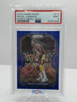 Magic Johnson Choice Prizm Blue 26/49 PSA 9 2020-21 Panini Prizm #219 LA Lakers