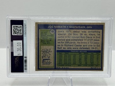 1972 Topps #100 Joe Namath New York Jets PSA 4