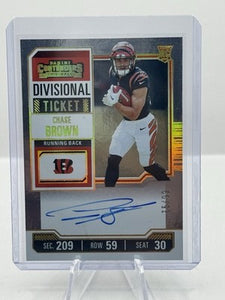 Chase Brown Auto RC 75/99 2023 Panini Contenders Divisional Ticket #105 Cincinnati Bengals