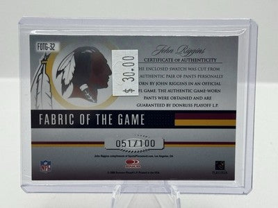 John Riggins Patch 051/100 2006 Leaf Certified Fabric of the Game #32 Washington