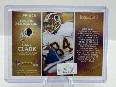 Gary Clark Auto 03/10 2024 Panini Encore Pacific Penmanship Washington Redskins