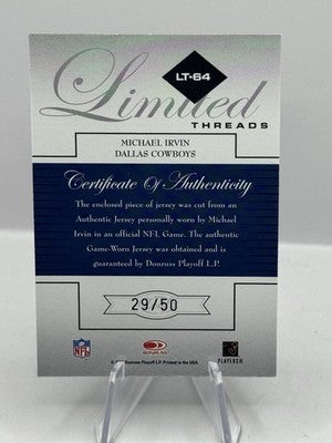 Michael Irvin Game Worn Patch 29/50 2005 Leaf Limited Threads #64 Cowboys