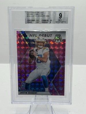 Justin Herbert Pink Camo Prizm RC BGS 9 2020 Panini Mosaic #263 LA Chargers