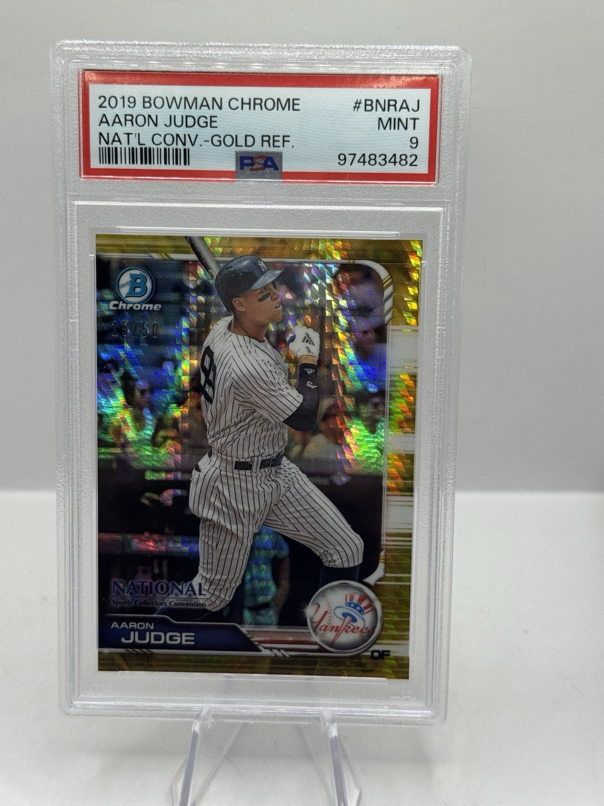 Aaron Judge Gold Refractor 15/50 PSA 9 2019 Bowman Chrome National Convention