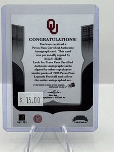 Billy Sims Auto 2006 Press Pass Legends OU Sooners