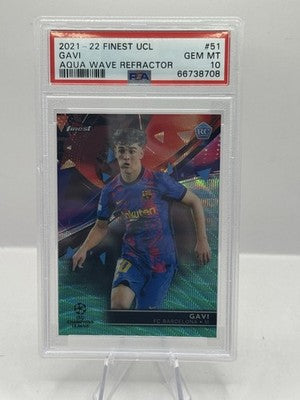Gavi RC Aqua Wave Refractor 48/75 2021-22 Topps Finest UCL #51 FC Barcelona
