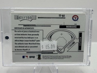 Ivan Rodriguez Dual Patch 061/100 2005 Playoff Absolute Tools of The Trade #92 Texas Rangers