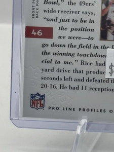 Jerry Rice Auto 1992 NFL Pro Line Profiles #46 San Francisco 49ers