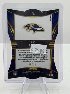 Ray Lewis White Prizm Die Cut 26/35 2019 Panini Select #118 Baltimore Ravens
