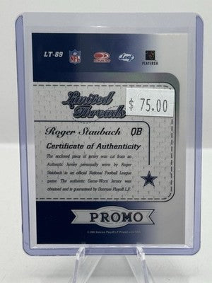 Roger Staubach 3 Color Patch PROMO 2003 Leaf Limited Threads Dallas Cowboys