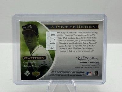 Greg Maddux Game Used Bat Patch 2001 Upper Deck Ovation Piece of History