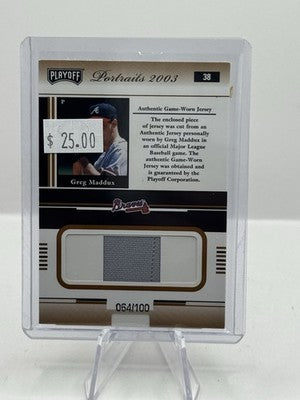 Greg Maddux Worn Jersey Patch 064/100 2003 Playoff Portraits #38 Atlanta Braves
